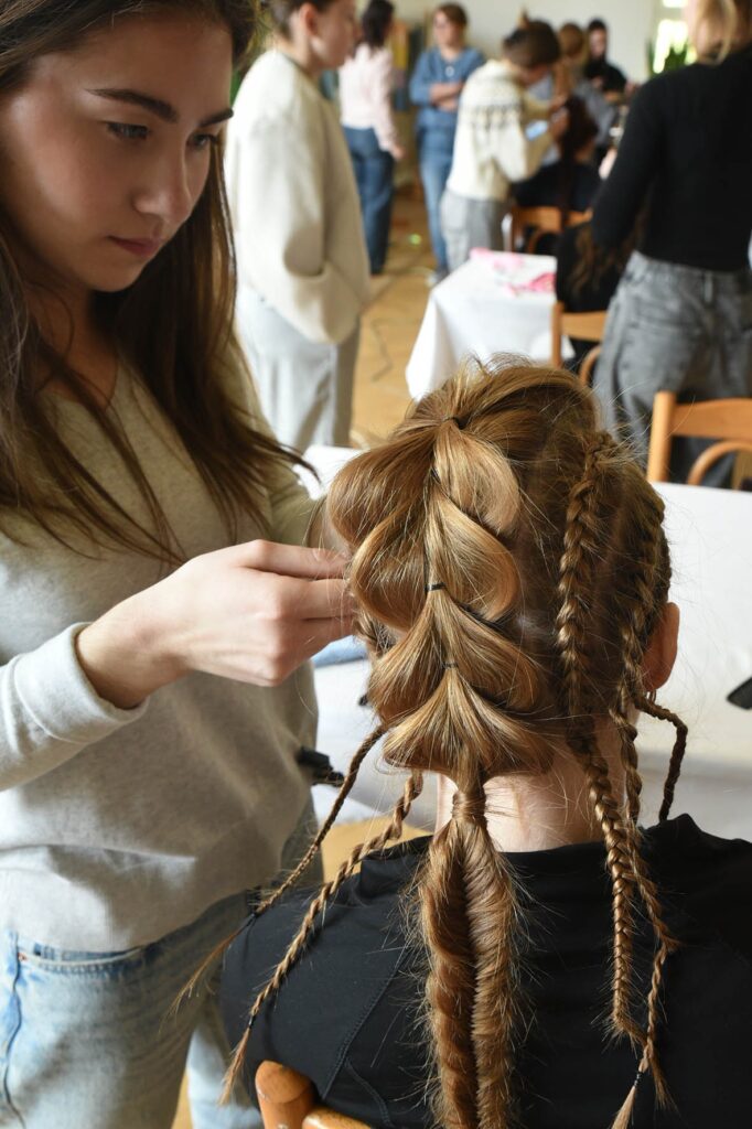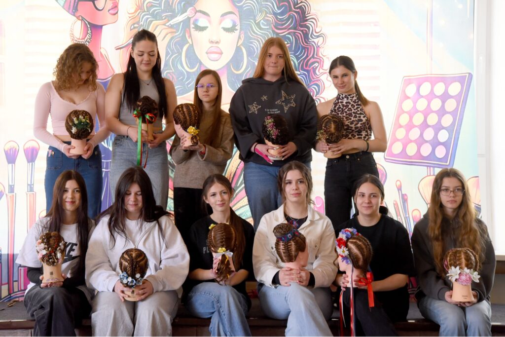 • 1. kategória – „Slovanská krása“: Naši najmladší žiaci vytvárali jemné zapletané účesy inšpirované ľudovými tradíciami.